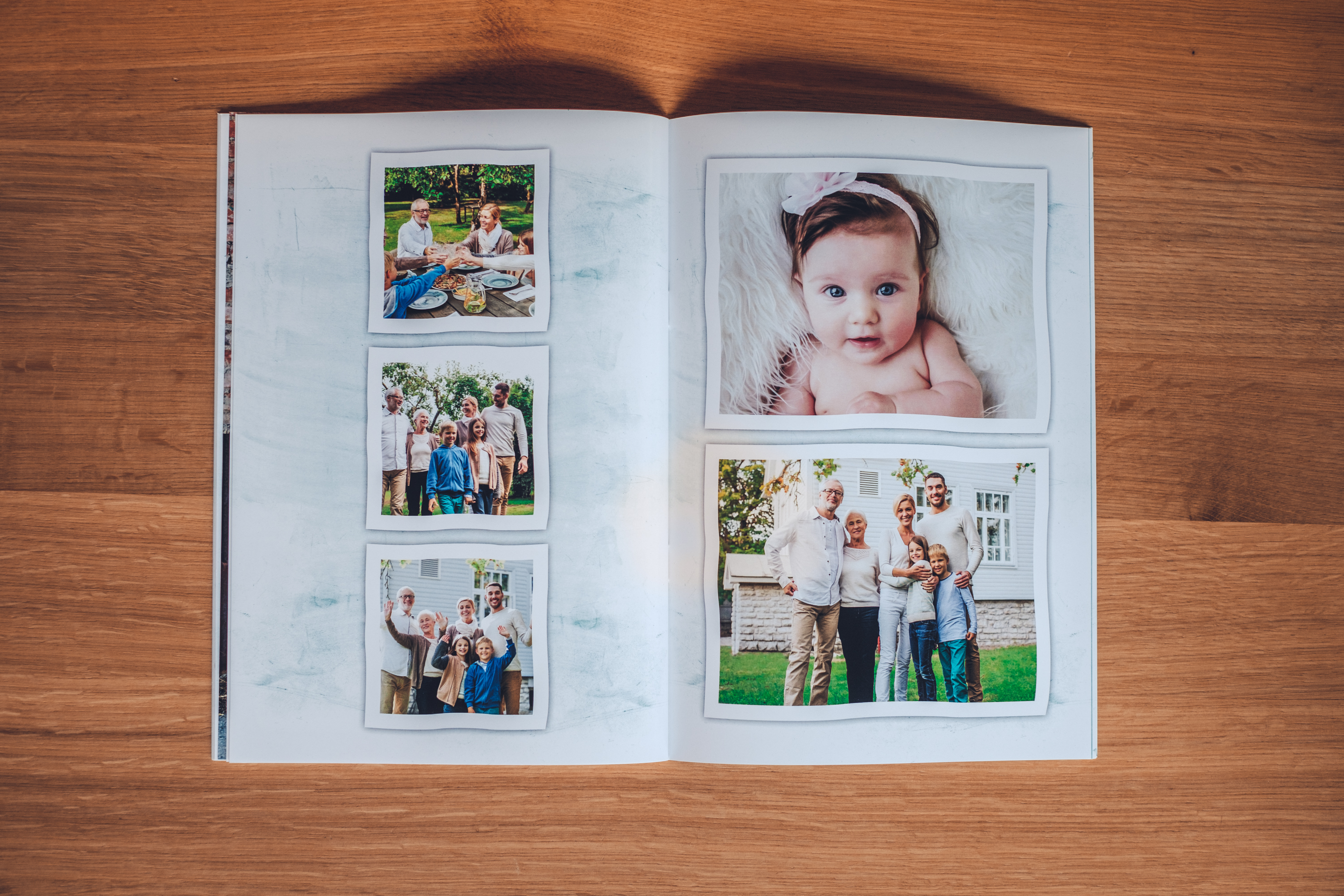 Questa versione del fotolibro è molto economica. Ma non preoccupatevi, ciò non ne sminuisce la bellezza: le foto sono di alta qualità, restano ben salde e sfogliare il libro è piacevole. Grazie alla sua rilegatura, può contenere da 12 a 64 pagine circa. Dipende solo da voi come la personalizzerete nel nostro editor online.
